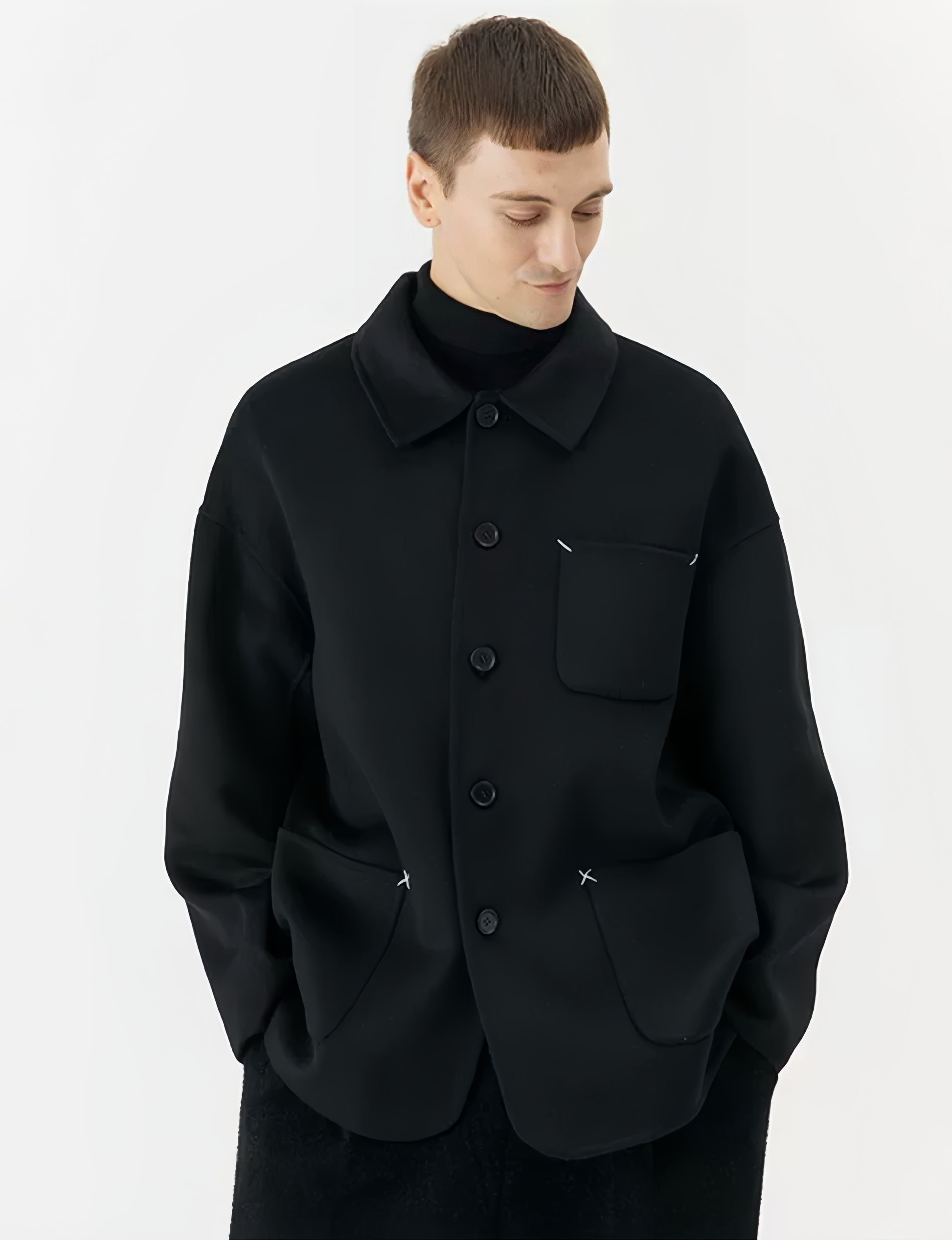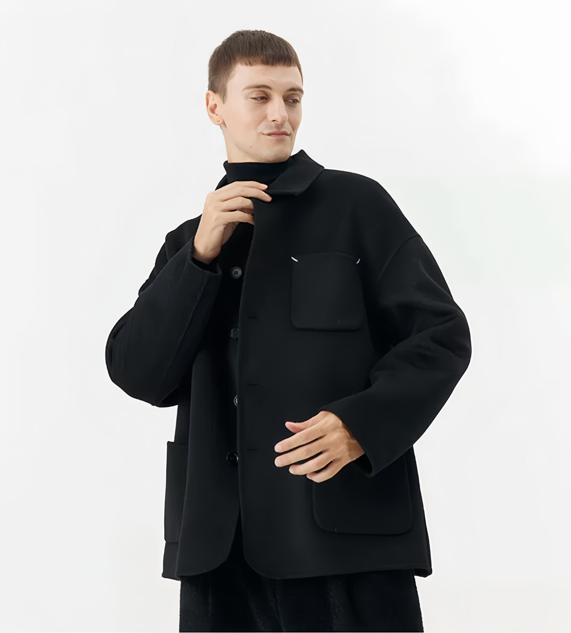 Material: 60% Wool , 40%Polyester Collar Type: Turn-down Collar Clothing Silhouette: Loose Fit Front Closure: Single-Breasted |