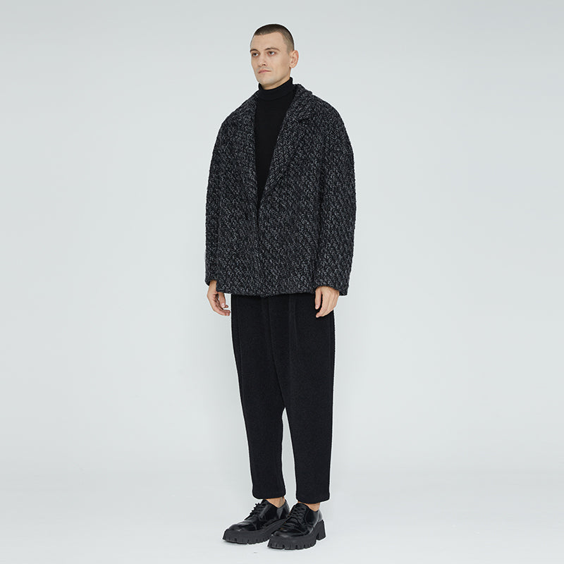 Material: 50% Wool 50% Polyester FiberCollar Type: LapelClothing Silhouette: Loose FitHem Design: Straight Hem ClothingClothing Craft: Non-iron TreatmentClothing Pocket Style: Side Seam Insert Pocket |